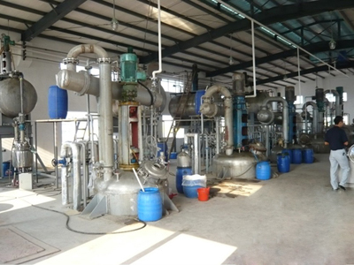| 1、反應鍋 2、豎式分餾柱 3、豎式冷凝器 4、臥式冷凝器 |